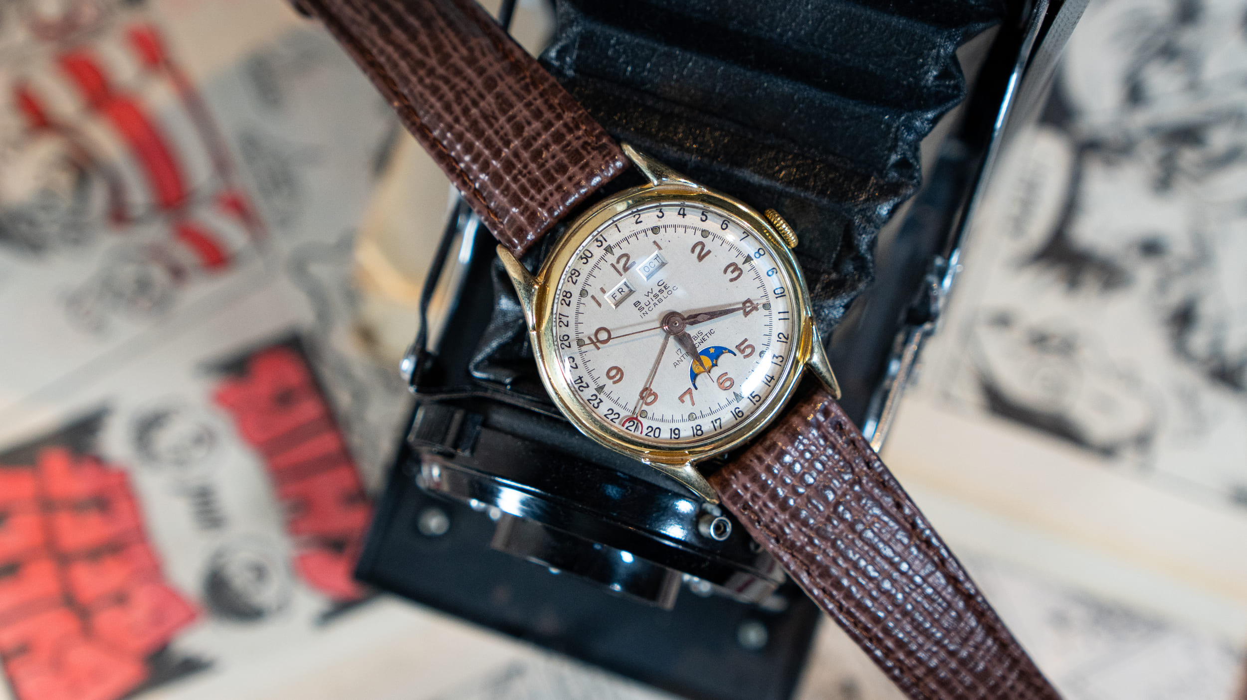 Featuring a full calendar and moonphase complication, this vintage timepiece is a testament to British watchmaking heritage.