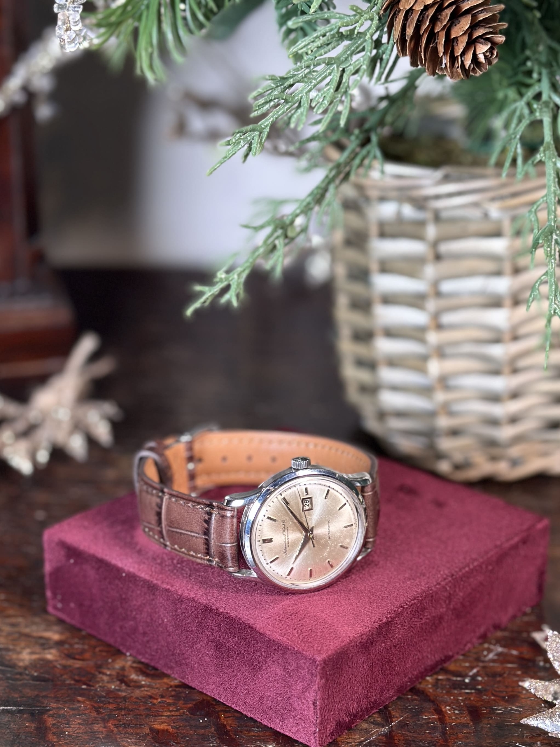 This 1960s International Watch Company Schaffhausen automatic date watch reflects the brand’s firmly engineering-led approach to watchmaking during the post-war period. By the 1960s, IWC had established a reputation for building movements that prioritised durability, efficiency, and long service intervals—qualities that set it apart from many of its more stylistically driven contemporaries. Automatic winding with a date complication had become a practical expectation rather than a novelty, and IWC executed it with characteristic restraint and mechanical integrity.