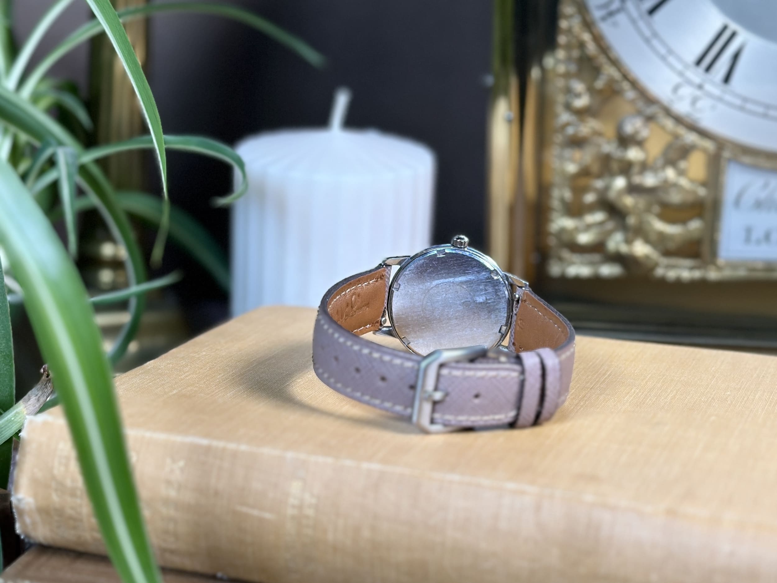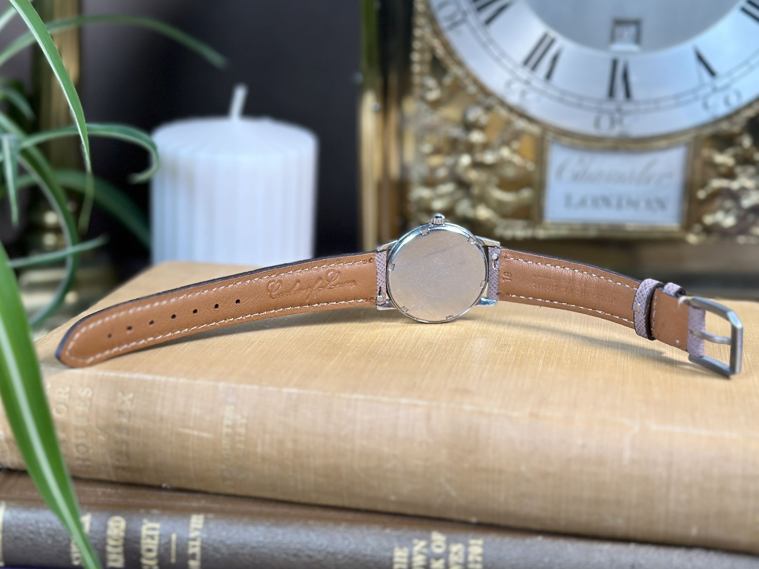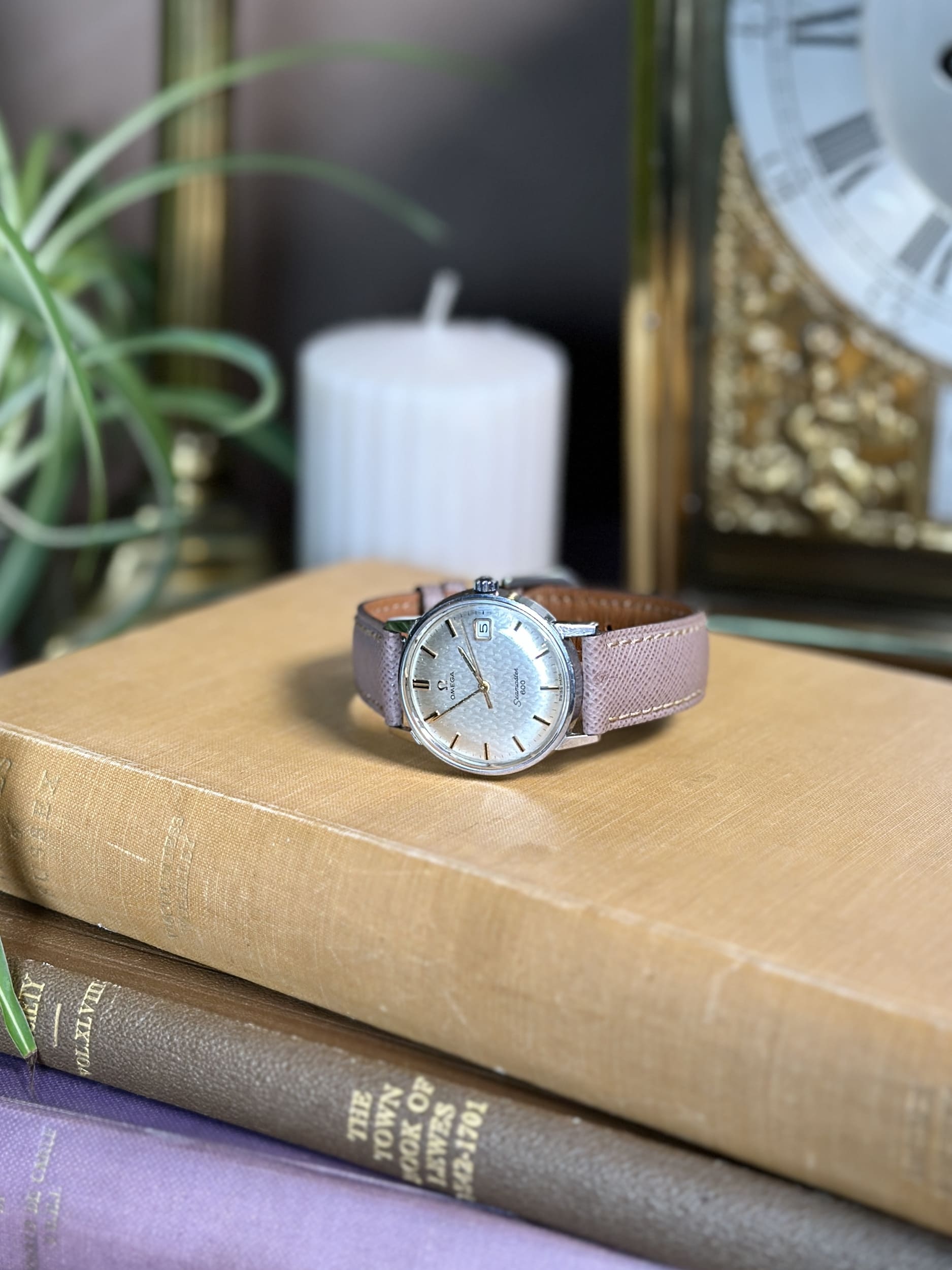 This particular example, distinguished by its silvered fish-scale (or “guilloché”) dial, is a rarer and more decorative variant within the series. The textured pattern plays with the light, giving the watch remarkable depth and shimmer when viewed from different angles — a subtle nod to the marine inspiration of the Seamaster name. Paired with applied indices and dauphine or baton hands, it captures the quiet refinement of 1960s Omega design before the sportier tool-watch era took hold. Today, such dials are prized by collectors for their distinctive artistry and the way they elevate a simple hand-wound Seamaster into a piece of mid-century horological charm.