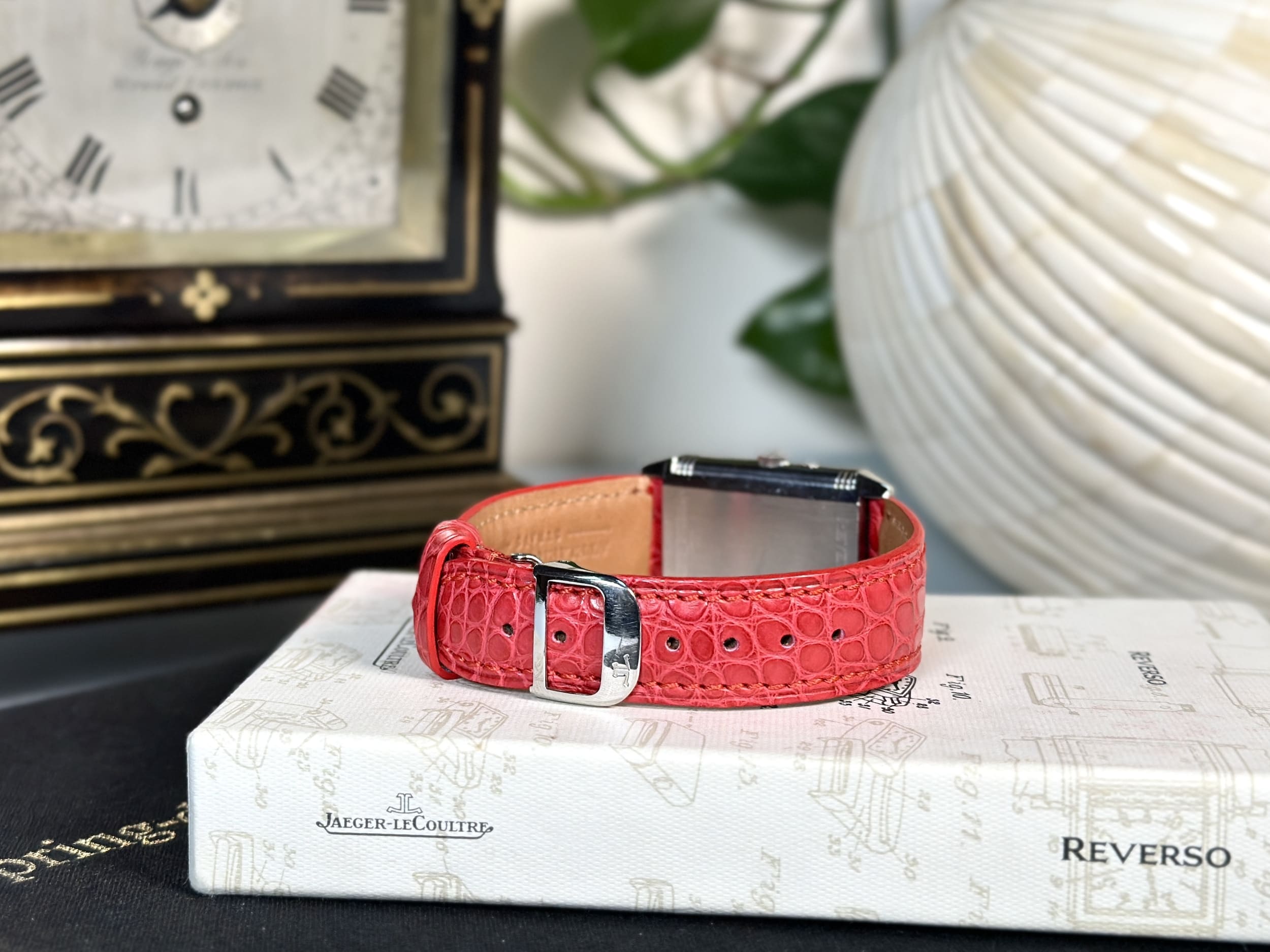 Inside beats the in-house calibre 854, a manually wound movement comprising over 200 components, finished to Jaeger-LeCoultre’s exacting standards and specifically engineered to power the reversible case mechanism. Its architecture allows both dials to be independently driven while maintaining excellent chronometric performance and slim proportions. The stainless-steel case retains the graceful fluting and rectangular geometry that have defined the Reverso for nearly a century, while the proportions of this generation — around 26 x 42 mm — provide a refined wrist presence that wears beautifully with both formal and casual attire.