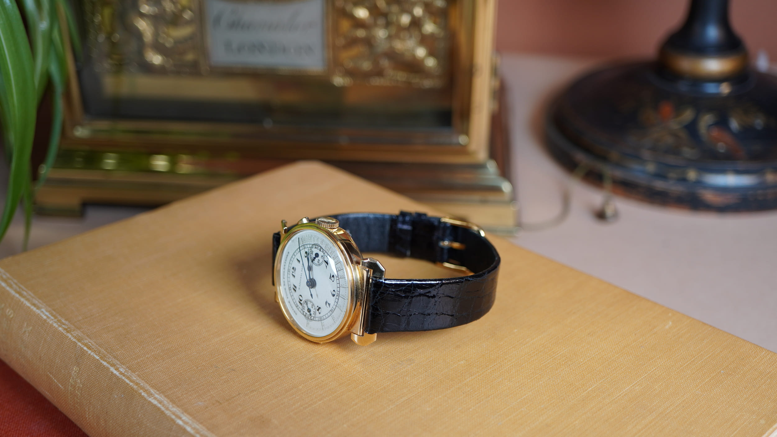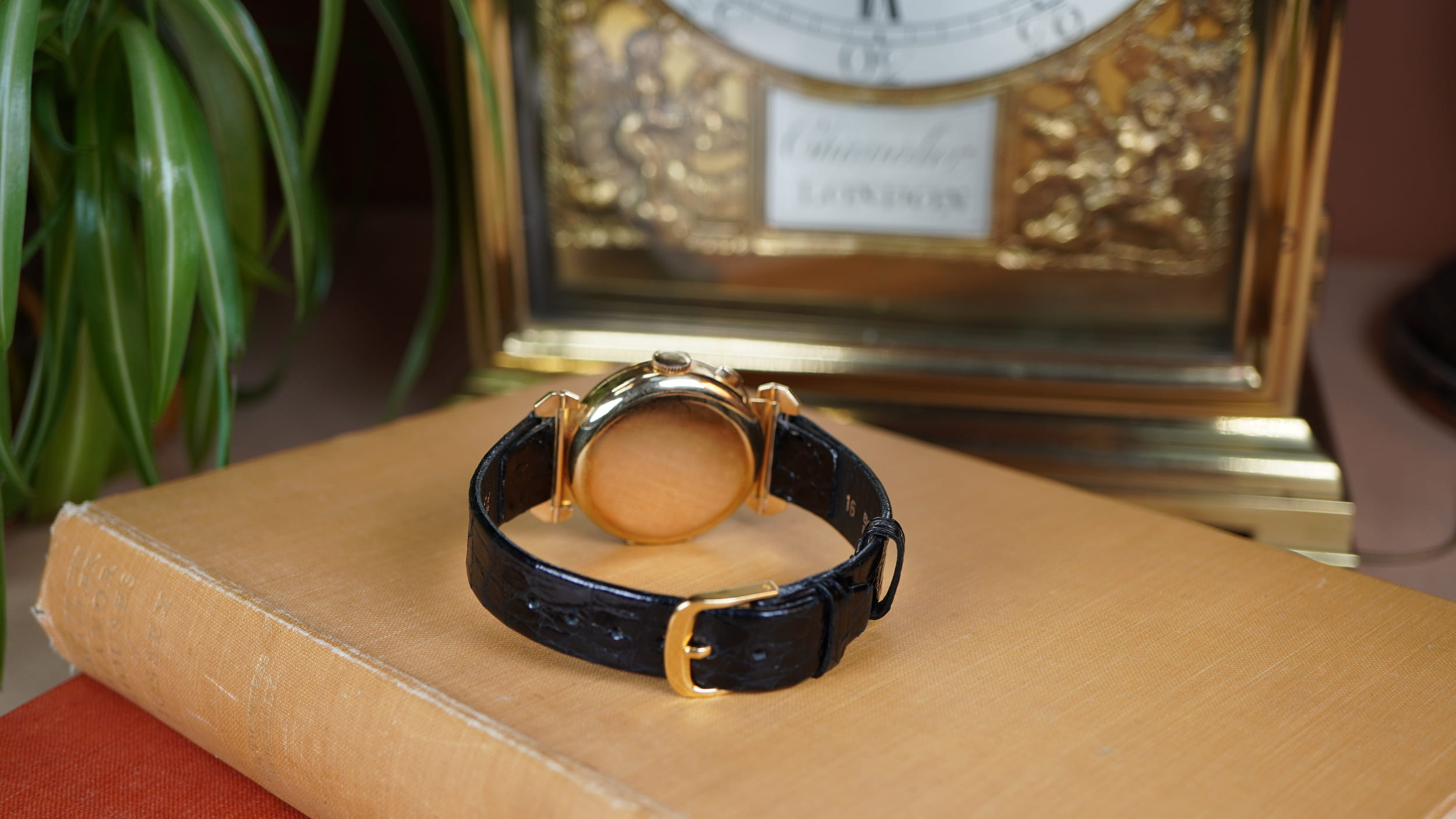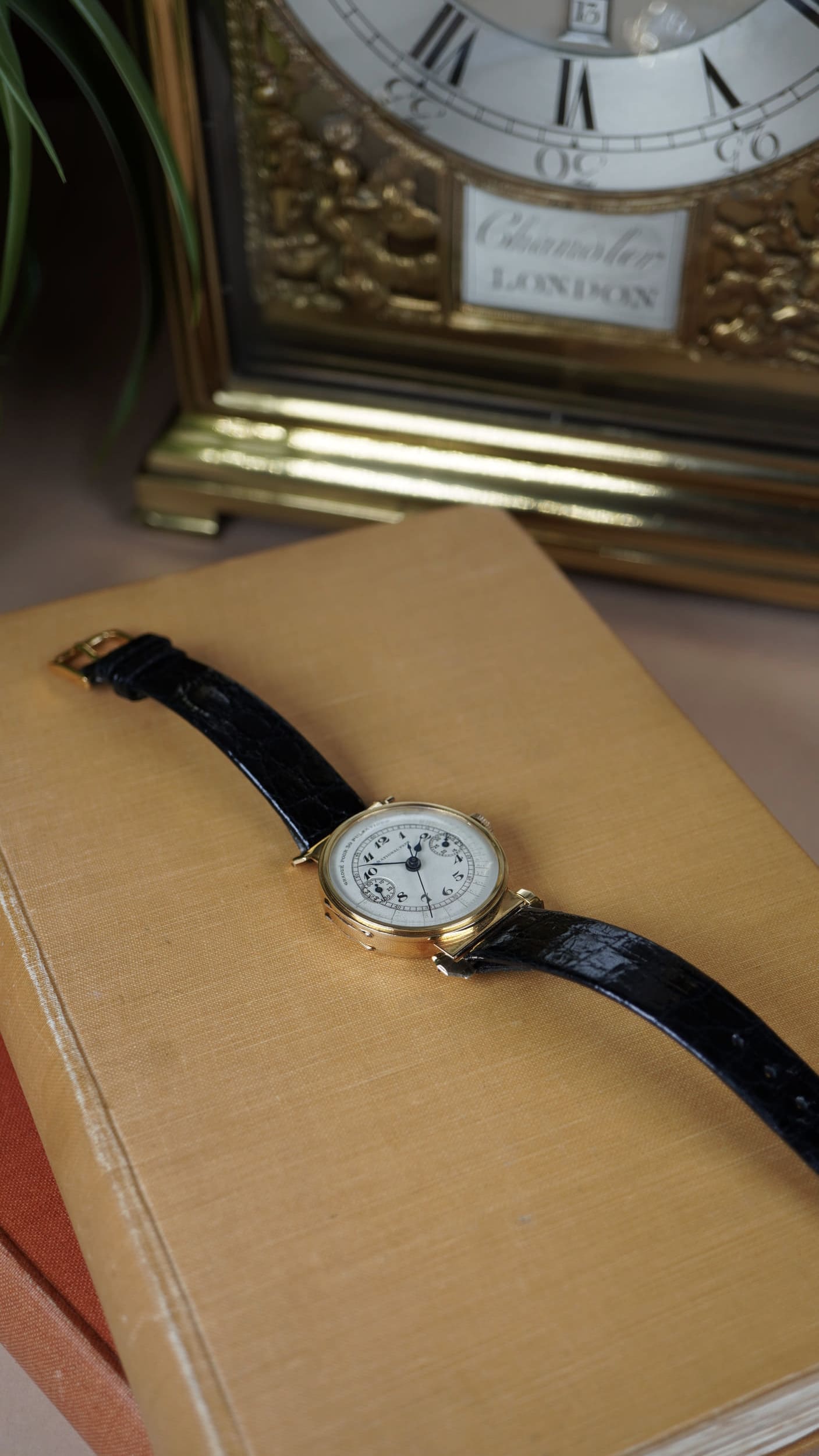 The movement is a traditional column wheel chronograph, the finely engineered system used in the highest quality chronographs of the period. The column wheel coordinates the chronograph functions through a precisely machined wheel with vertical pillars which guide the operating levers. This construction produces the crisp and positive action associated with early professional chronographs and reflects the level of mechanical refinement expected from high-grade Swiss manufacture during the 1930s.