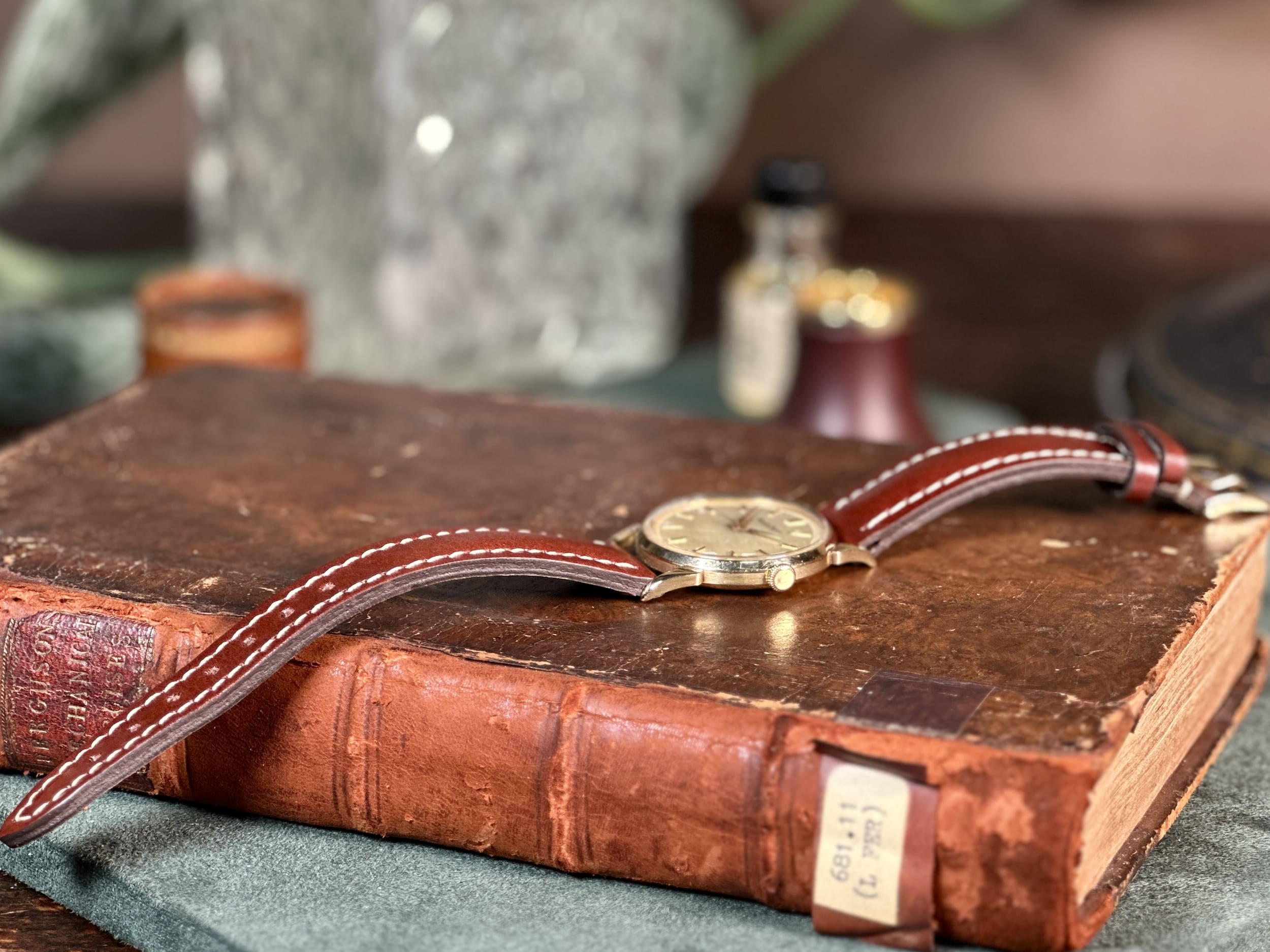 This 1950s IWC (International Watch Company) in 18-carat yellow gold is a superb representation of the brand’s post-war design language — a period when IWC’s watches combined technical precision with an understated sense of luxury. Produced in Schaffhausen, this piece embodies the engineering discipline that set IWC apart from its more decorative Geneva rivals. The slim gold case, sharply defined lugs and narrow bezel lend the watch a refined, architectural quality typical of the brand’s mid-century aesthetic, when form followed the quiet confidence of function.