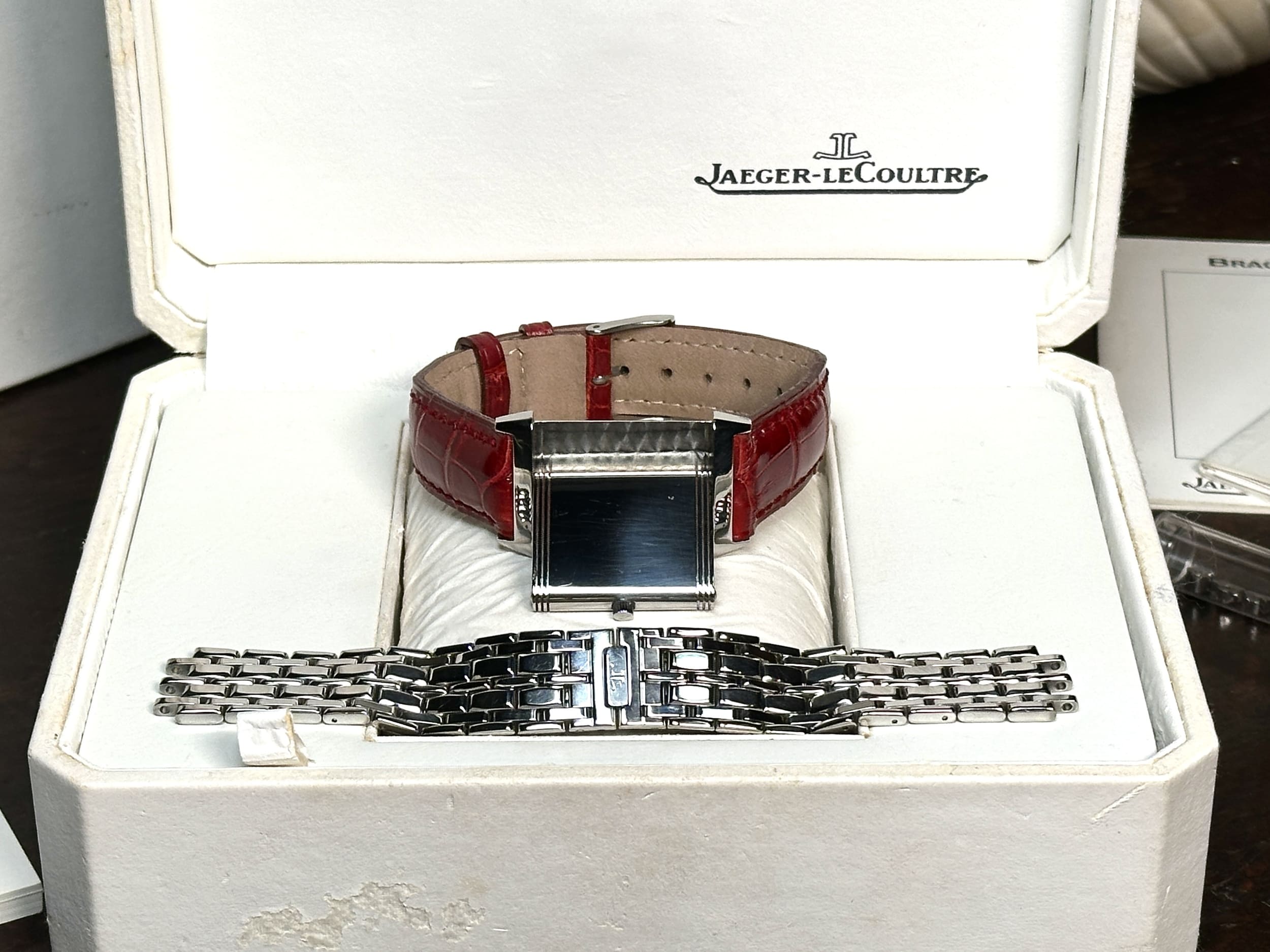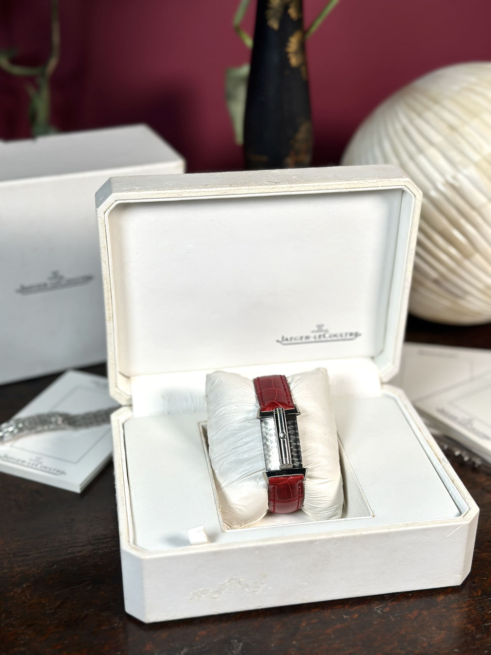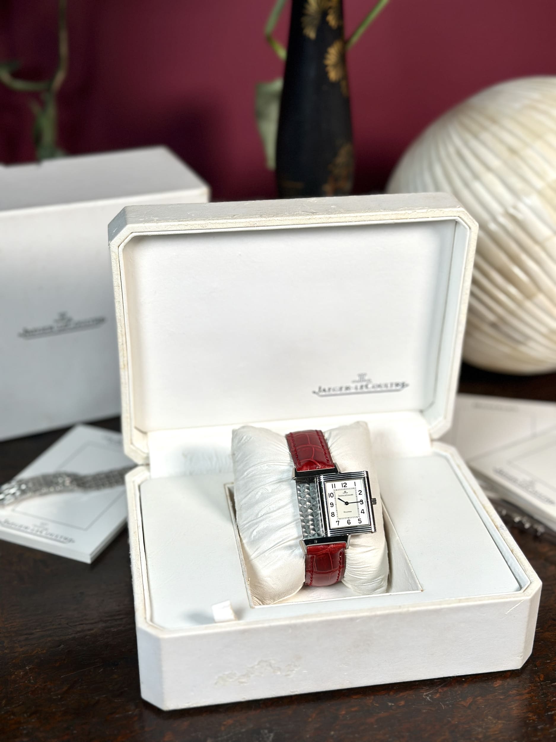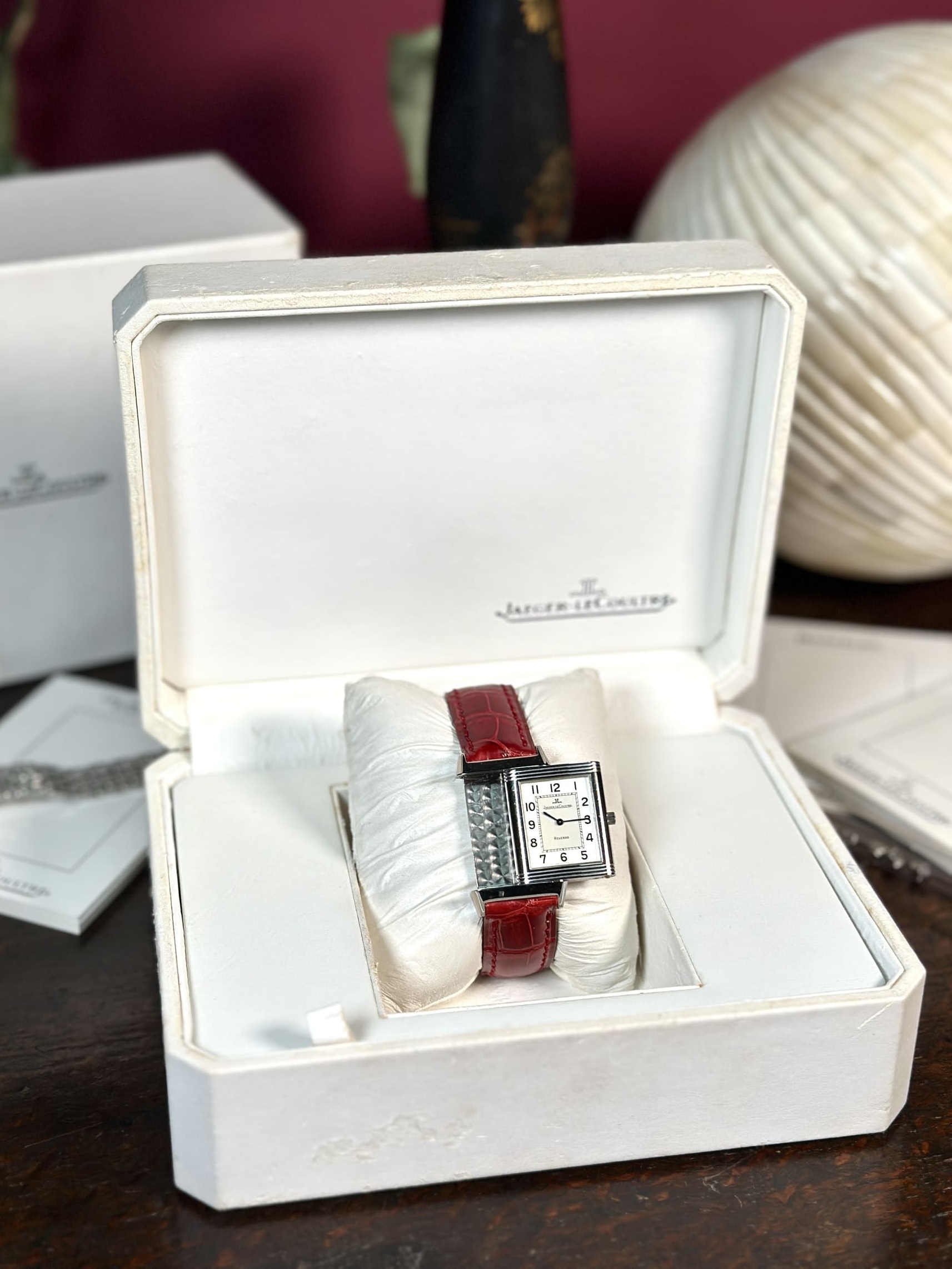 The Jaeger-LeCoultre Reverso reference 250.8.86 belongs to one of the most enduring designs in 20th-century watchmaking — a model originally conceived in 1931 for British Army officers stationed in India who needed a wristwatch robust enough to survive a polo match. The ingenious reversible case, patented by René-Alfred Chauvot, allowed the delicate crystal and dial to be flipped and protected by a solid metal back, a concept that became both practical and stylistically iconic. By the 1990s, when this 250.8.86 example was produced, the Reverso had evolved from a sporting instrument into a refined expression of Art Deco elegance, maintaining its distinctive rectangular case, stepped flanks, and minimalist proportions.
